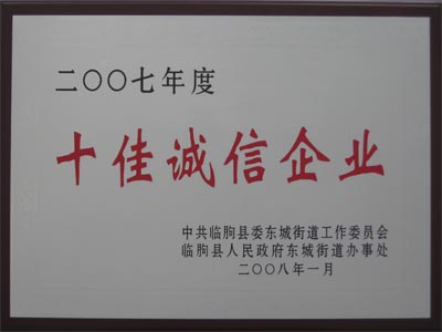 2008年1月,我公司被臨朐縣人民政府評(píng)為二零零七年度十佳誠(chéng)信單位。