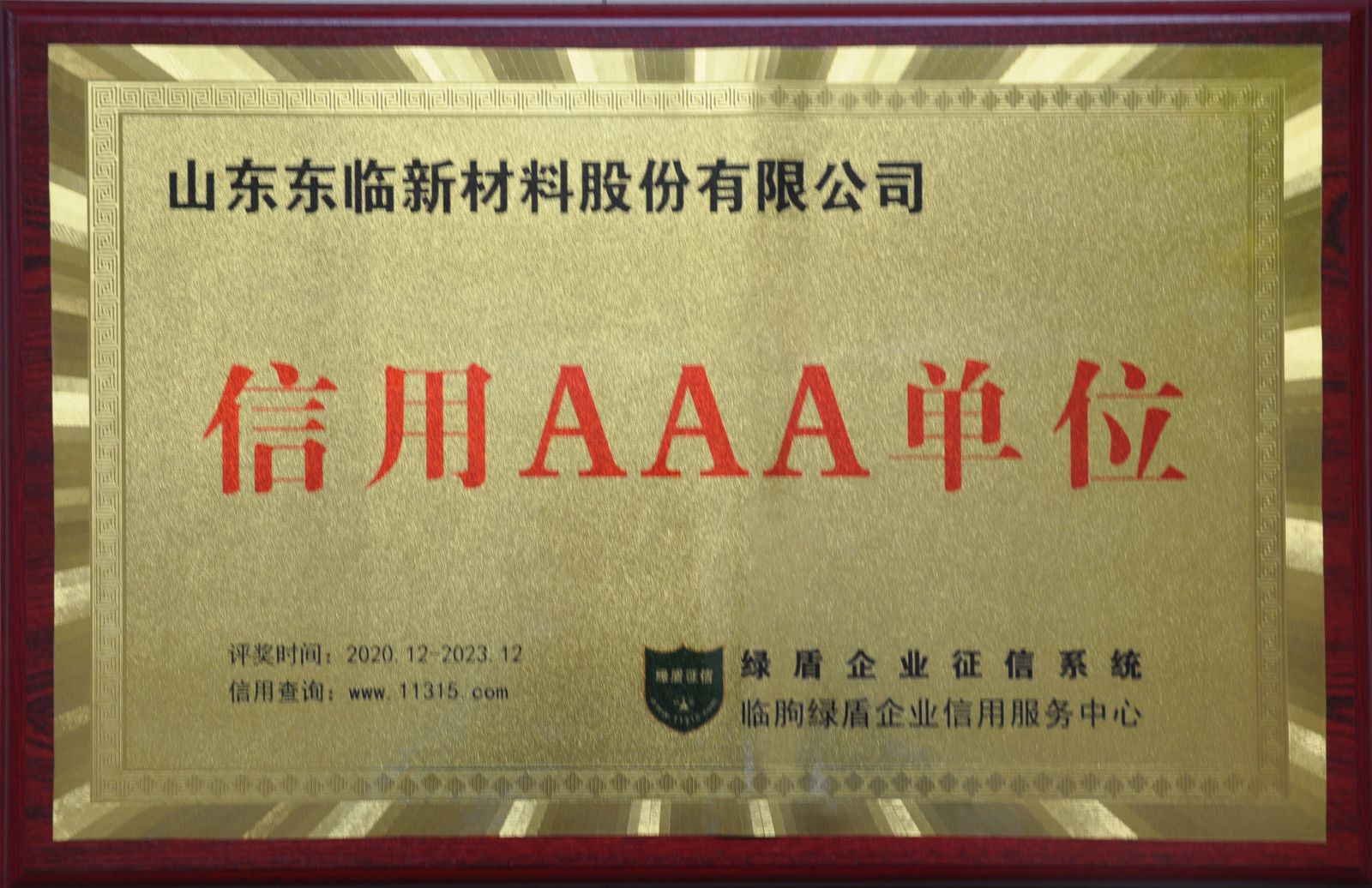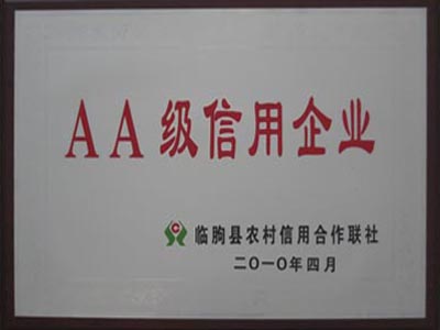 2010年4月,我公司被臨朐縣農(nóng)村信用聯(lián)合社評(píng)為AA級(jí)信用企業(yè)。并且在2012年4月仍然獲得此榮譽(yù)。