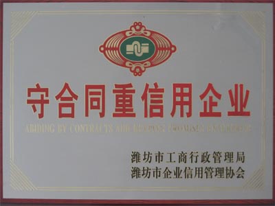 2011年6月,我公司被濰坊市工商行政管理局授予“守合同重信用企業(yè)”的稱號(hào)。