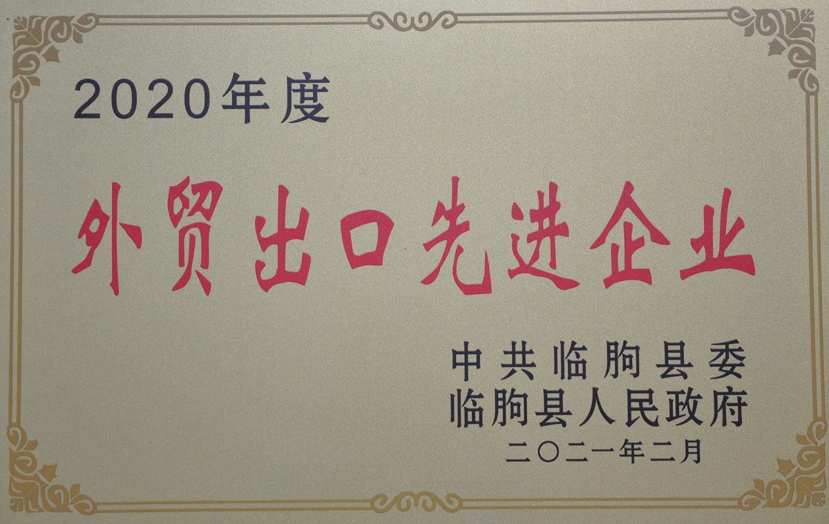 2021年02月,我公司被中共臨朐縣委臨朐縣人民政府授予“外貿(mào)出口先進(jìn)企業(yè)”榮譽(yù)。