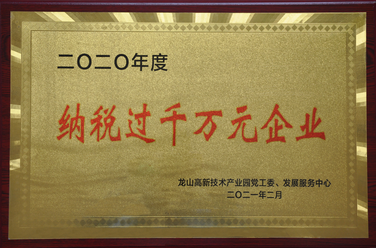 2021年02月,我公司被龍山高新技術(shù)產(chǎn)業(yè)園黨工委、發(fā)展服務(wù)中心授予“納稅過千萬元企業(yè)”。